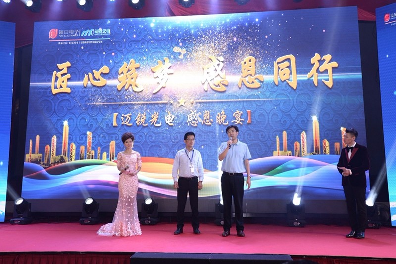 發(fā)布會后感恩晚宴開場,充滿異域風(fēng)情的舞蹈、生動精彩的沙畫表演、動感十足的3D人屏互動秀等精彩表演,現(xiàn)場氣氛空前熱烈,歡呼不斷。邁銳光電與在場的所有來賓舉杯共慶,卞董和陳總的精彩祝詞,更是說出了每一位邁銳人的心聲和愿望,讓我們對邁銳光電的未來更加充滿信心和動力。